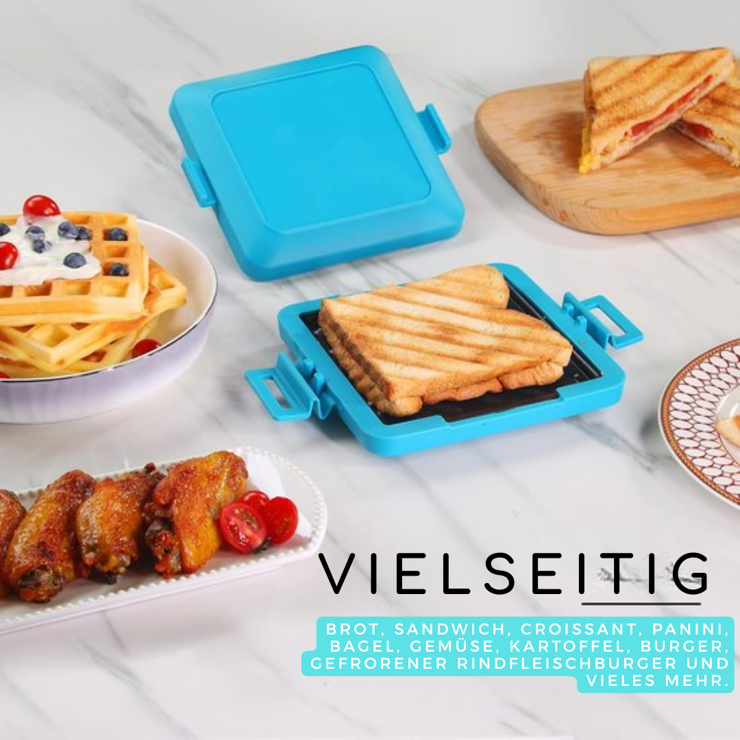 Heute ein Sandwich. Morgen ein Panini. Danach ein Croissant, Bagel oder sogar Speck und Würstchen. Die ToastForge™ ist ein Mikrowellen-Grill für Frühstück, Mittagessen, schnelle Snacks oder Momente, in denen du keine Lust zu kochen hast, aber trotzdem etwas Gutes willst. Zuhause, im Büro, im Studentenwohnheim oder im Camper – wo du bist, röstet die ToastForge™ mit.