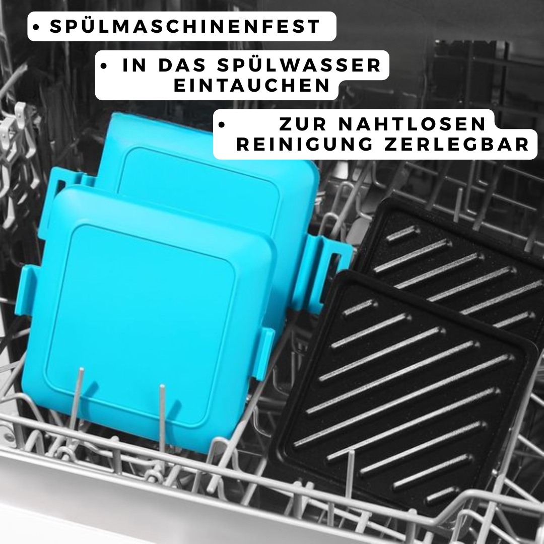 ✓ Die ToastForge™ nutzt fortschrittliche Mikrowellen- und Wärmwellentechnologie, um eine Metallgrillplatte extrem schnell zu erhitzen. Das Silikongehäuse hält die Wärme, sodass das Essen schnell, knusprig und gleichmäßig gegart wird. Kein Strom, kein offenes Feuer, keine komplizierten Einstellungen. Nur intelligente Hitze genau dort, wo sie gebraucht wird.