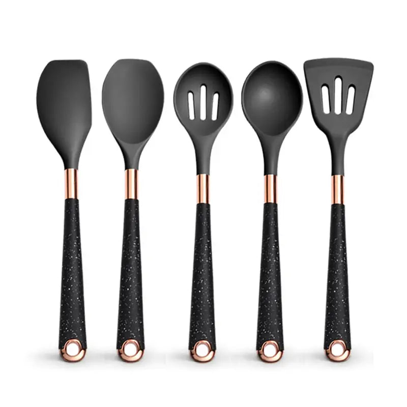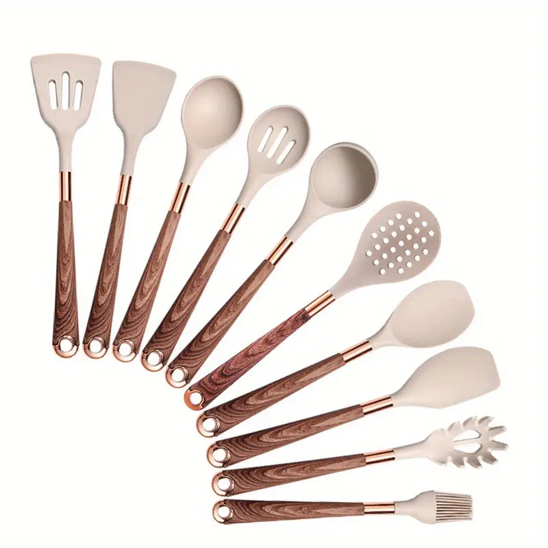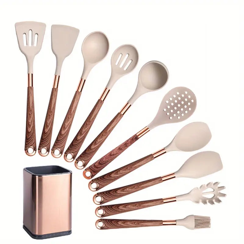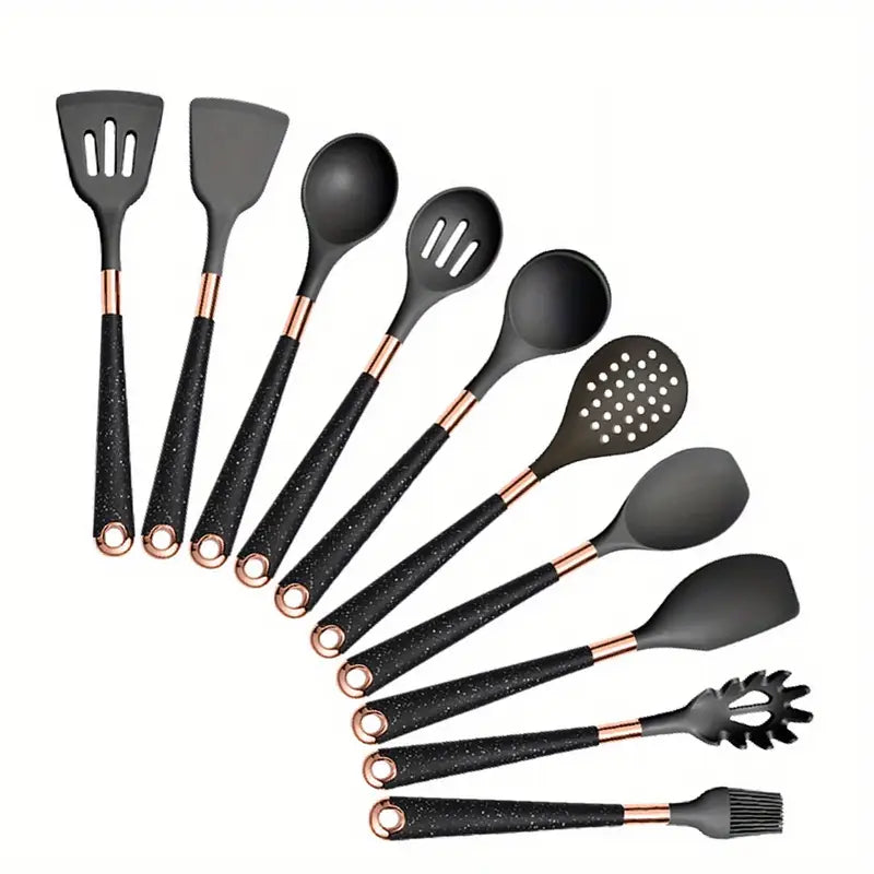 Hier kommt das CulinaPro™ Silikon-Kochgeschirrset ins Spiel. Keine schmelzenden Löffel. Keine gefährlichen Kanten, die nach dreimaligem Gebrauch abbröckeln. Nur eine fröhliche Armee von Kochhelden, die immer bereitstehen und Ihre Pfanne genauso sanft behandeln wie Ihren Lieblingshoodie.