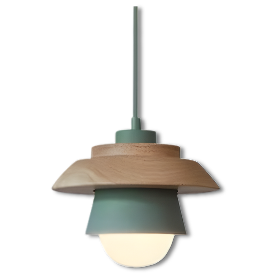 • 1 x Hängelampe (Aluminiumschirm mit Holzakzent)