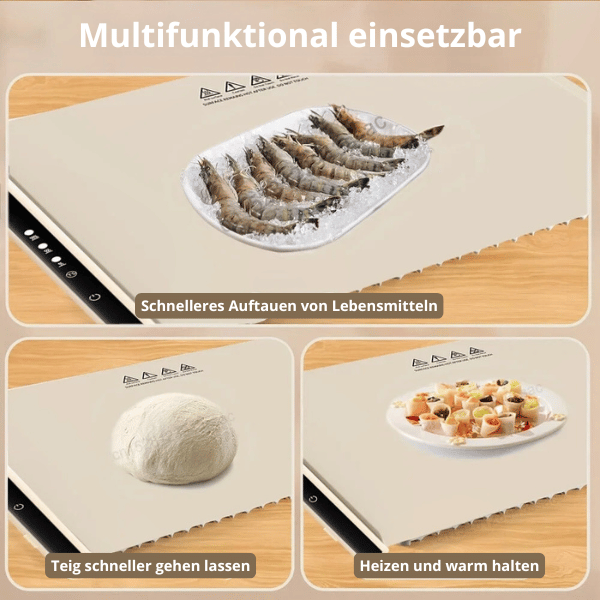 Vom Auftauen bis zum Aufgehen von Teig, von heißer Schokolade bis zu geschmolzener Schokolade – Stayhot™ ist mehr als nur eine Tischunterlage. Es ist eine Mini-Warmhalteplatte für Ihre gesamte Küche.