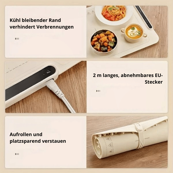 Halten Sie Ihre Gerichte mühelos auf der perfekten Temperatur. Diese elektrische beheizte Tischmatte ist Ihre ultimative Lösung für stressfreies Gastgebersein und herzliche Zusammenkünfte.